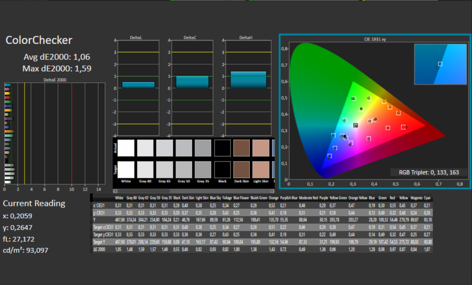 ΔE ColorChecker Calman: 1.06 | ∀{0.5-29.43 Ø4.78}