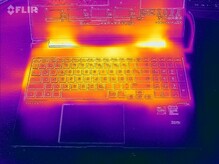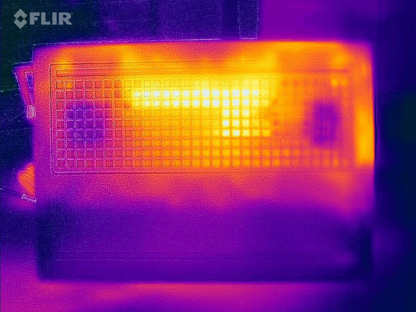 (-) La temperatura máxima en la parte superior es de 50 °C / 122 F, frente a la media de 40.4 °C / 105 F, que oscila entre 21.2 y 68.8 °C para la clase Gaming.