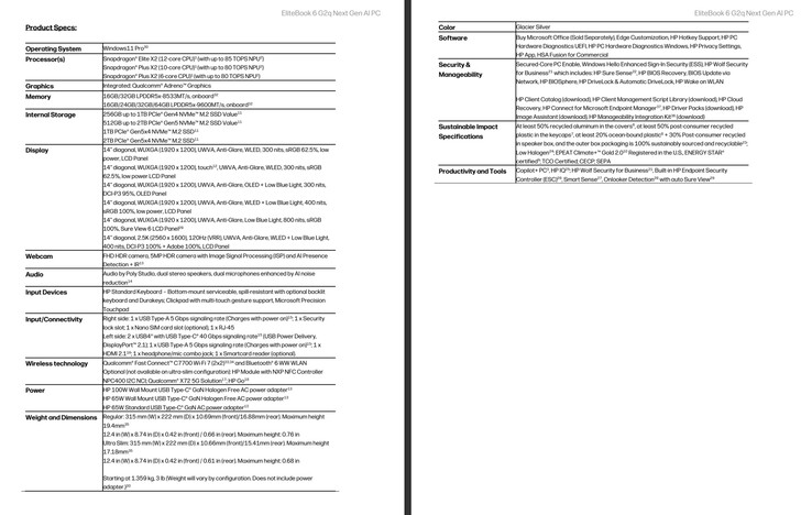 HP añade que el EliteBook 6 G2q debería durar hasta 28 horas entre cargas. Sin embargo, tomaríamos estas afirmaciones sobre la duración de la batería con una buena dosis de escepticismo hasta que lleguen las revisiones independientes. HP no sustituirá oficialmente el HP EliteBook G1q (actualmente 910 dólares en Amazon) hasta julio de 2026. La empresa tampoco ha confirmado aún los precios de ninguna SKU.