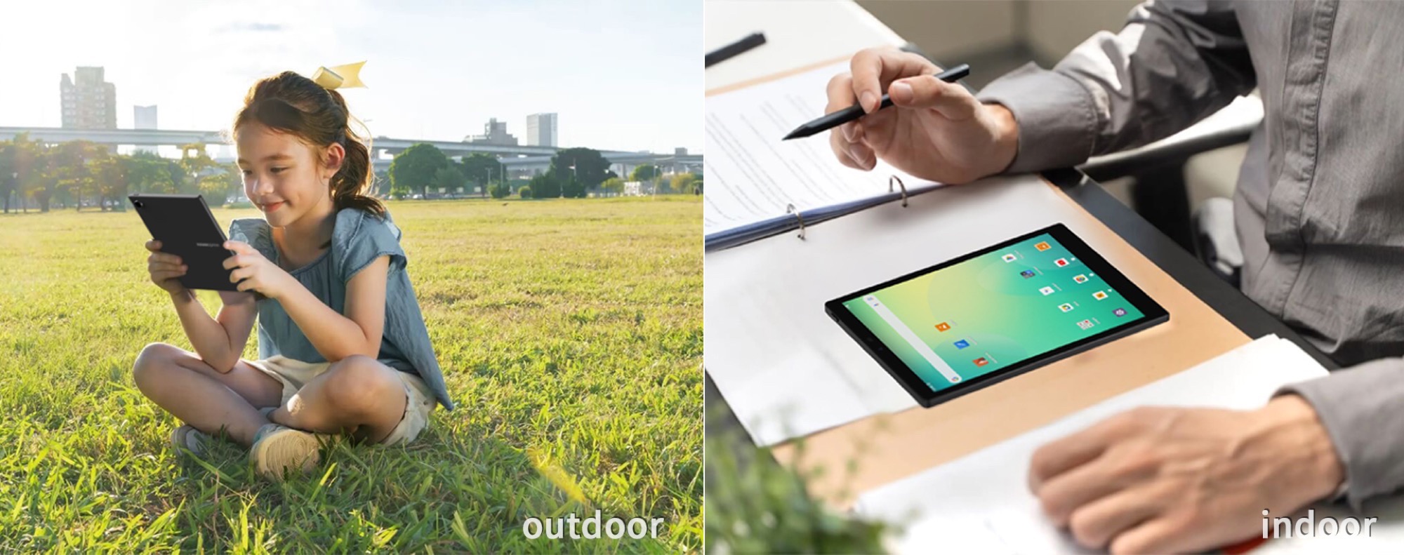 La Hannspree Lumo está diseñada para combinar las ventajas de un lector de libros electrónicos con las de una tableta convencional Android. Para ello, el fabricante utiliza una pantalla LCD reflectante que no necesita retroiluminación y que, en cambio, es visible a través de la luz reflejada, similar al papel o a la pantalla MiP de una Garmin Instinct 2(desde 247 $ en Amazon).