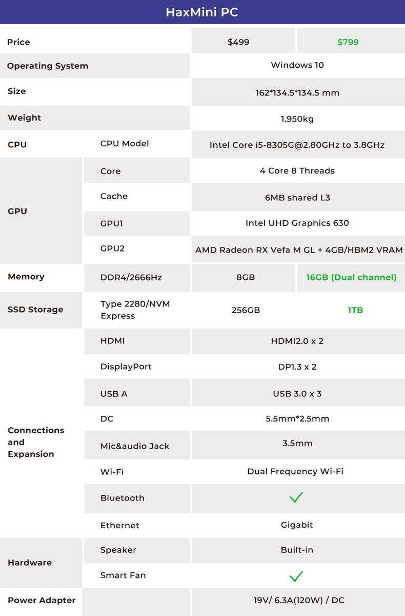 HaxMini mini PC lanzando pronto con el súper raro procesador Intel-AMD Core i5-8305G que la mayoría de los usuarios probablemente nunca han oído hablar de