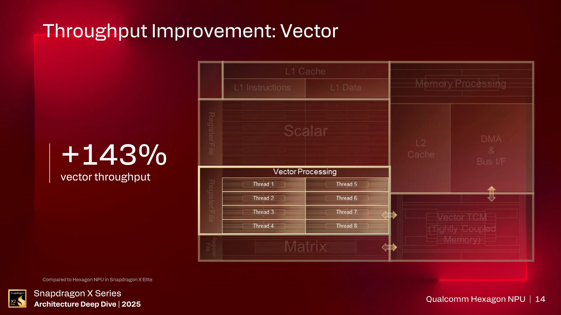 La NPU 6 también cuenta con un bus un 127% más rápido y ocho hilos paralelos para un procesamiento vectorial un 143% más rápido con soporte para FP8 y BF16.