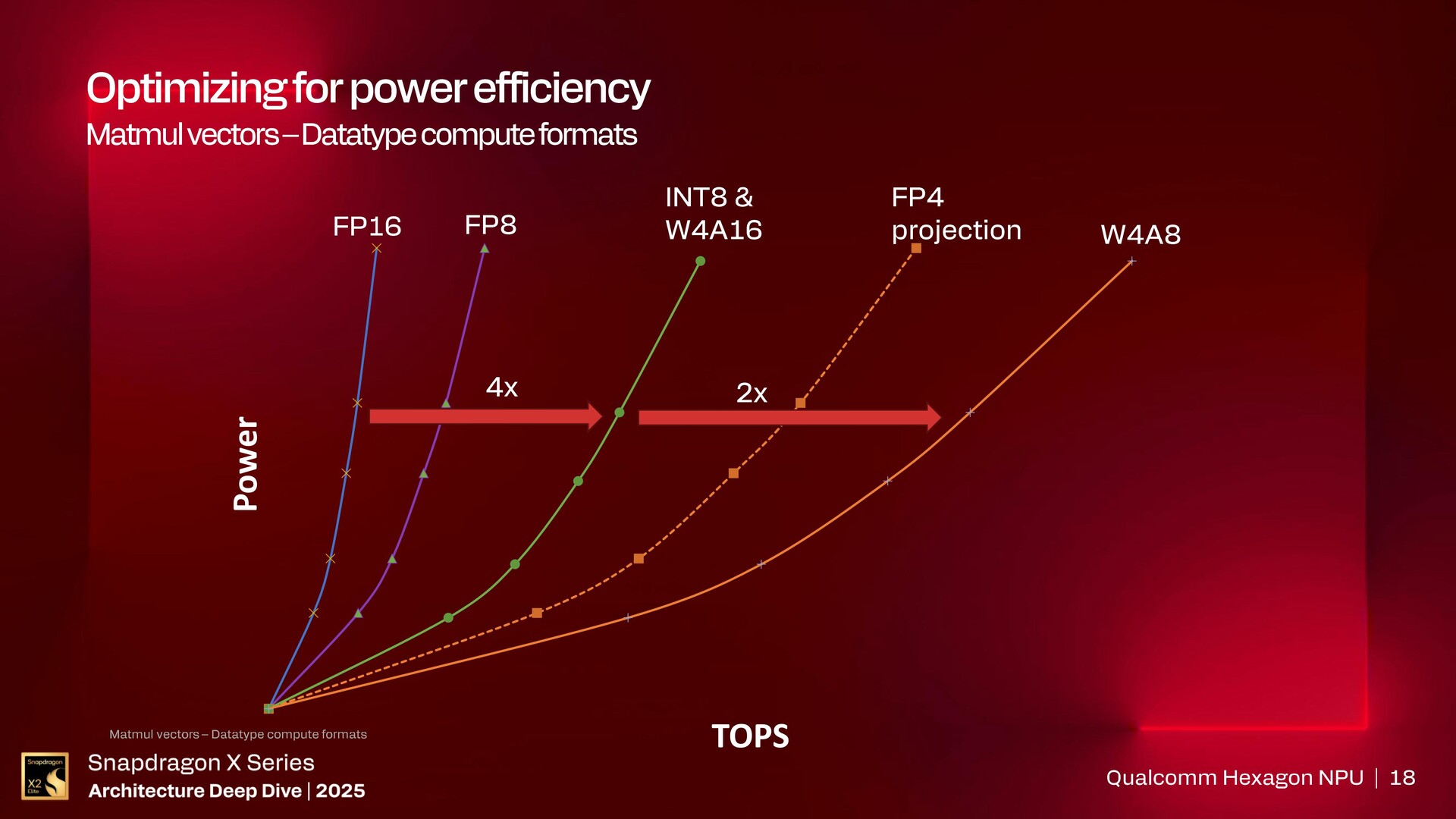 La unidad de matriz cuenta con un raíl de alimentación independiente y ahora es hasta un 78% más rápida con un peso de 2 bits y compatibilidad con FP8+BF16.