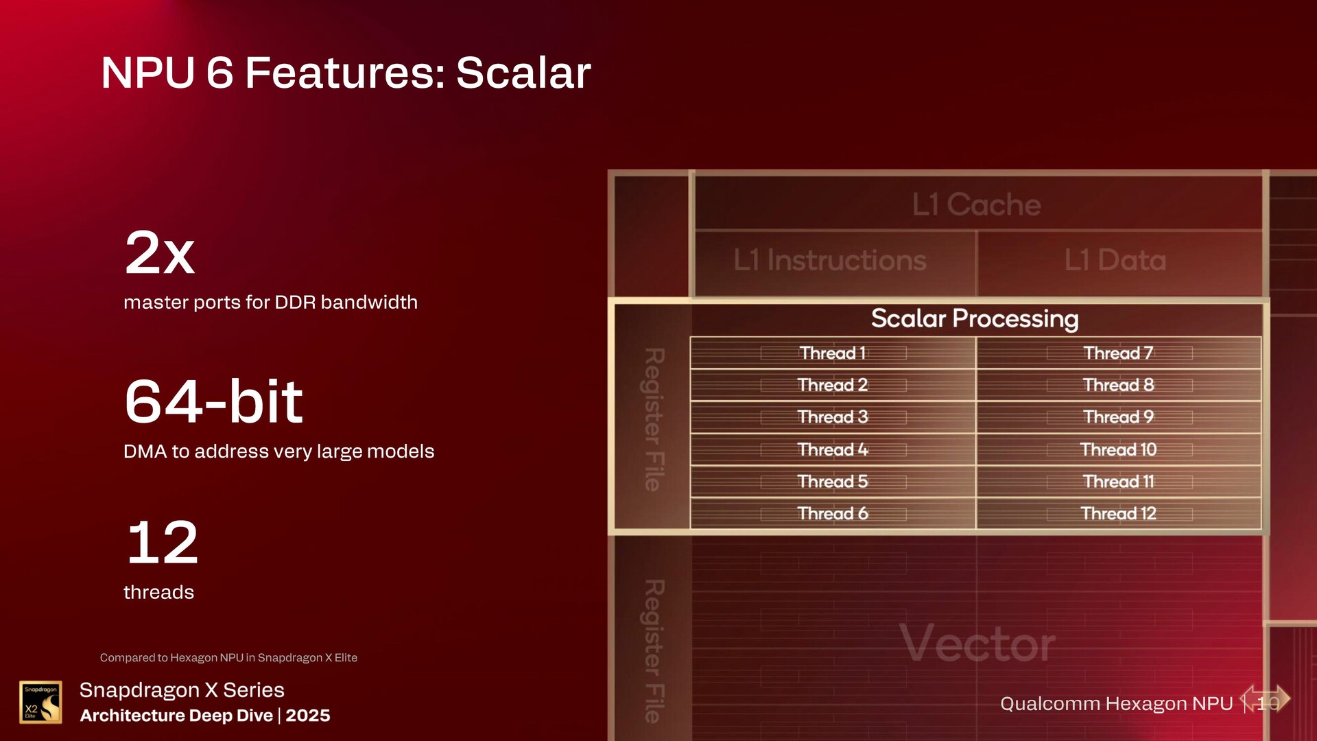 Qualcomm detalló cómo Hexagon comenzó originalmente como un procesador digital de señales que se dedicaba principalmente al procesamiento escalar hasta la actual forma NPU 6 que también realiza vectores y aceleración de enteros y matrices FP16.