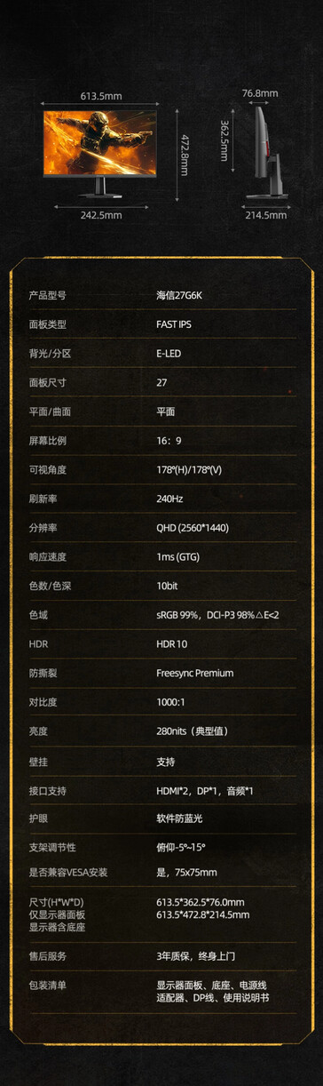 En consecuencia, el 27G6K-PRO también cuenta con la certificación VESA DisplayHDR 400. Por lo demás, la pareja ofrece tiempos de respuesta GtG de 1 ms en sus paneles Fast IPS, así como la tecnología AMD FreeSync Premium para mitigar el desgarro de imagen. Además, Hisense afirma que cada monitor cubre el 98% del espacio de color DCI-P3, pero sólo contiene un par de puertos HDMI 2.0, además de un único DisplayPort y conexiones jack de 3,5 mm. Actualmente, Hisense ha limitado los lanzamientos del par a China, donde se venden por 1.299 CNY (~179 dólares) y 1.599 CNY (~221 dólares), respectivamente.