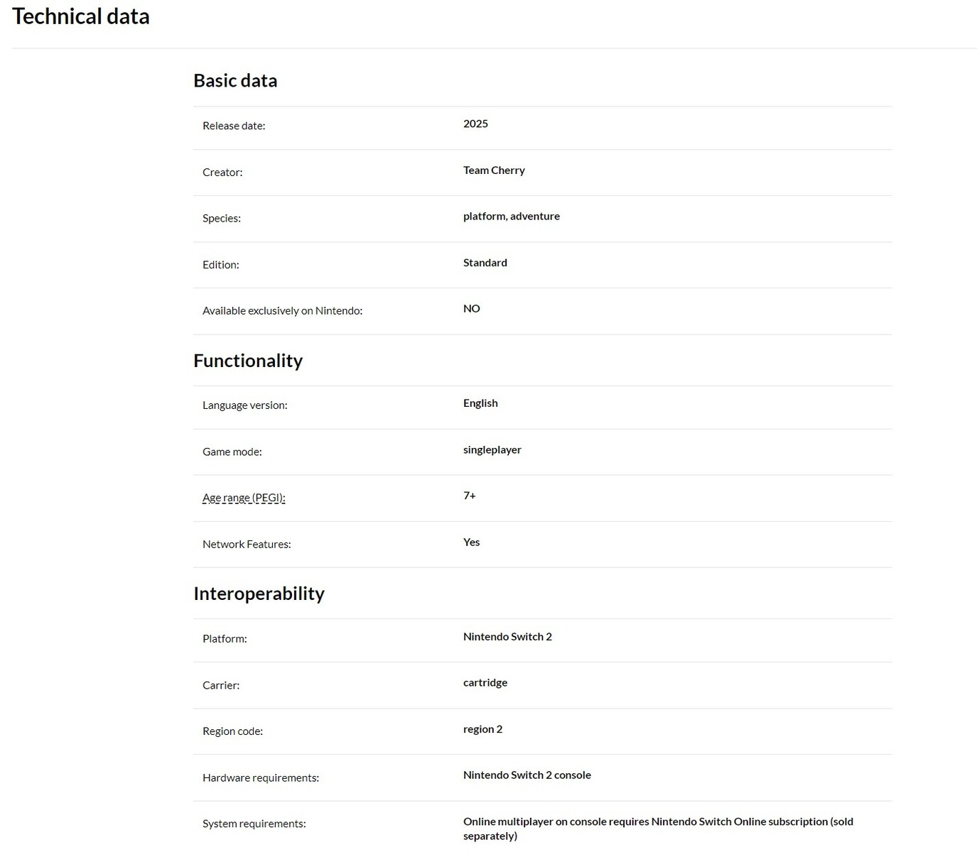 Tras la reciente revelación de Nintendo sobre Switch 2, los jugadores sabían que Hollow Knight: Silksong debutaría en 2025. Poco después de la presentación, el equipo de marketing del juego confirmó Las versiones para Switch y Switch 2. Aun así, quedaba la duda de si la nueva consola de Nintendo recibiría una potencialmente costosa edición física. Para la Switch 2, la página de RTV Euro AGD especifica un lanzamiento en cartucho. Por desgracia, no se menciona ni el precio ni una disponibilidad más exacta.