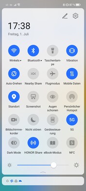 Si el smartphone está conectado a un ordenador por cable, las fotos, los contactos y los mensajes pueden sincronizarse a través del programa Honor Suite. Las actualizaciones también pueden controlarse a través del software. Honor no ha proporcionado ninguna información sobre próximas actualizaciones, y aún no está claro si se entregará Android 12 y cuándo. Durante el proceso de revisión, el smartphone recibió una actualización de seguridad a principios de julio y actualizó el parche de abril a junio. En base a esto, se puede suponer que el dispositivo recibirá una actualización de seguridad cada tres meses.