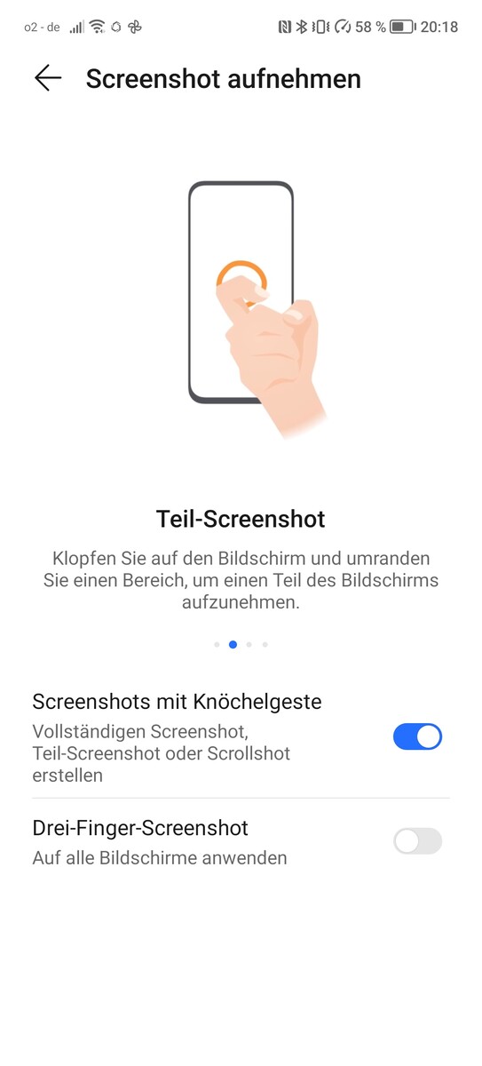 Honor el Magic4 Lite 5G también ofrece un funcionamiento con una sola mano que se gestiona mediante gestos de deslizamiento. Sin embargo, la imagen mostrada es tan grande que llegar a todas las zonas con una sola mano es difícil. El smartphone también admite algunos gestos que se pueden realizar con los nudillos. Un doble clic con un nudillo hace una captura de pantalla, mientras que un doble clic con dos nudillos inicia la captura de pantalla. Los comandos se pueden cambiar en el submenú correspondiente.