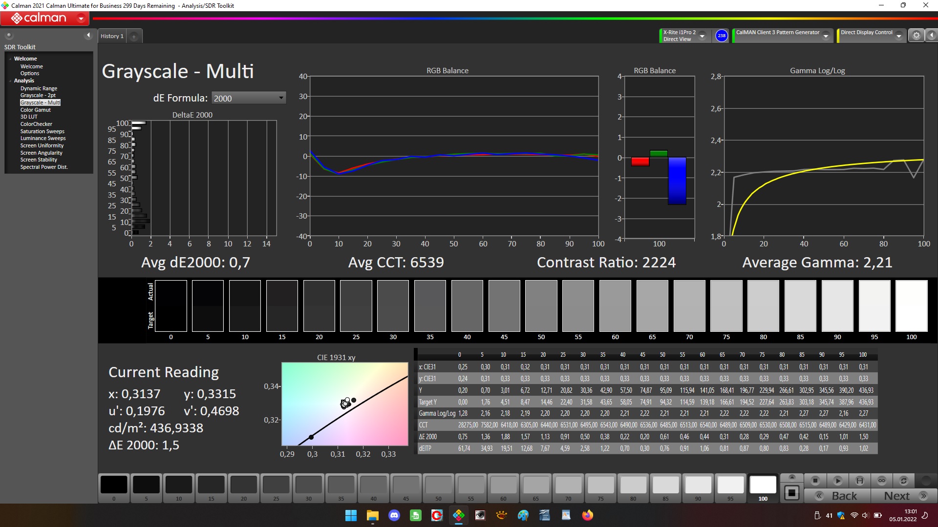 ΔE Greyscale Calman: 2.7 | ∀{0.09-98 Ø5}