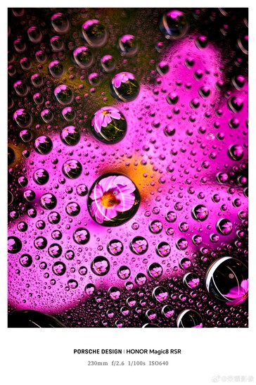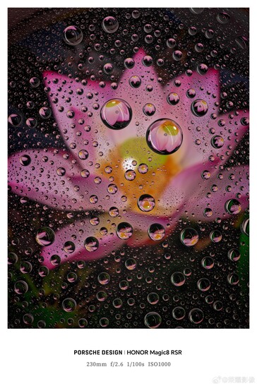 Quien quiera hacerse una primera idea de la calidad de la cámara RSR puede ver muchas fotos en Weibo, incluidos algunos ejemplos de telemacro. Al parecer, Honor ha permitido a los primeros probadores publicar sus fotos antes del lanzamiento. Hemos incrustado algunos ejemplos a continuación. Puede encontrar algunos más en Weibo utilizando este término de búsqueda. Algunas de las fotos de retrato que aparecen a continuación también muestran otros valores de apertura, concretamente en torno a F/4,0. Sin embargo, es probable que sean el resultado del software de retrato y no los valores de apertura físicos reales