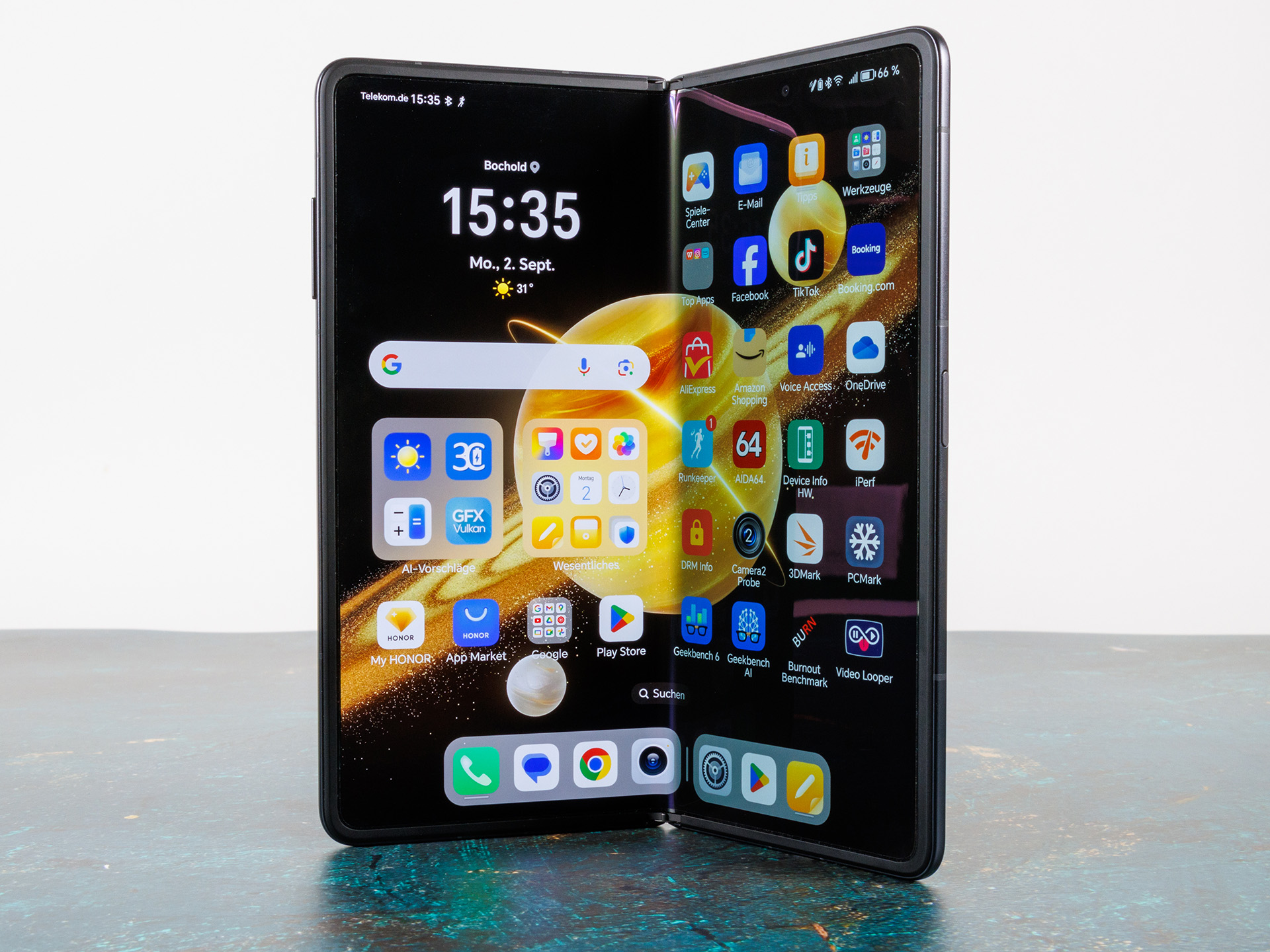 Además, Honor ha rectificado las deficiencias de su predecesor y le ha dotado de carga inalámbrica plegable y una certificación IPX8. Sólo sigue faltando la WLAN de 6 GHz. El V3 también mostró problemas con la disipación del calor en nuestra prueba de estrés, pero esto no ha demostrado ser un problema durante el uso diario hasta ahora. Sin embargo, las funciones modernas como UWB o Bluetooth LE siguen sin estar a bordo. Su soporte de actualizaciones de cinco años está bien, pero Samsung y Google han demostrado que es posible un soporte más largo.