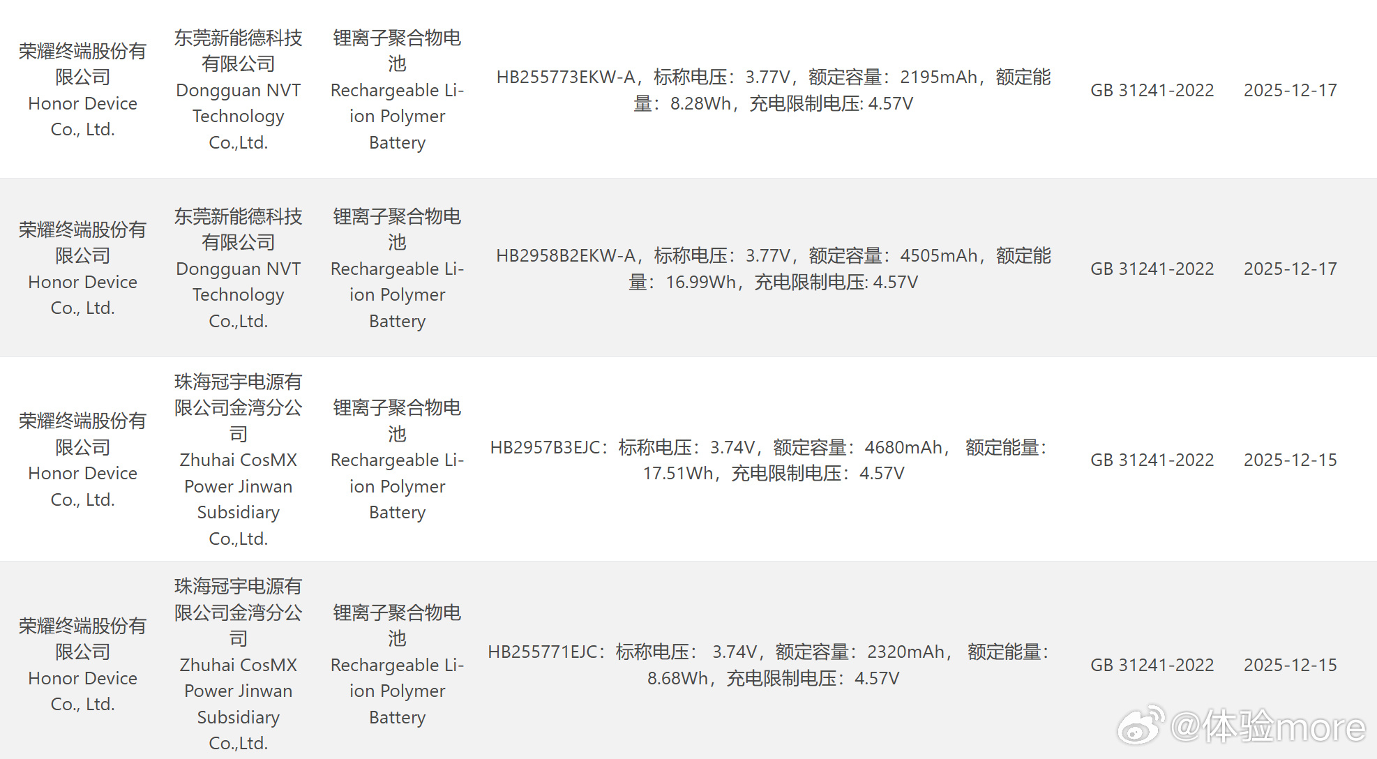 Ahora, este último ha aparecido en el mismo organismo regulador. Anteriormente, filtradores como Digital Chat Station sugirieron que los prototipos del Magic V6 habían llegado con baterías de 7.000 mAh. Sin embargo, el listado de la CCC indica que las unidades de venta al público podrían salir de fábrica con una batería de 7.150 mAh de capacidad típica. De ser así, este cambio representaría una actualización generacional del 17% entre la Magic V5 y el Magic V6.