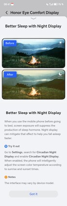 Honor fue uno de los primeros fabricantes en apostar por una pantalla OLED con atenuación PWM de alta frecuencia y lo ha mantenido hasta ahora en sus smartphones. Aunque esto no es todo lo que se necesita para conseguir un rendimiento óptimo, Honor ha avanzado varios pasos y ofrece un paquete para gestionar la pantalla de forma óptima, además de contar con la certificación de TÜV Rheinland.