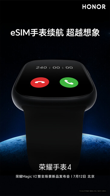 El dispositivo estará acompañado en el escenario por el Honor Watch 4, un smartwatch smartwatch con soporte independiente para llamadas de voz. El fabricante afirma que aportará una duración de batería "más allá de lo imaginable" a su categoría de eSIM-por ejemplo, un nuevo póster parece insinuar una autonomía de hasta 240 minutos en llamadas.