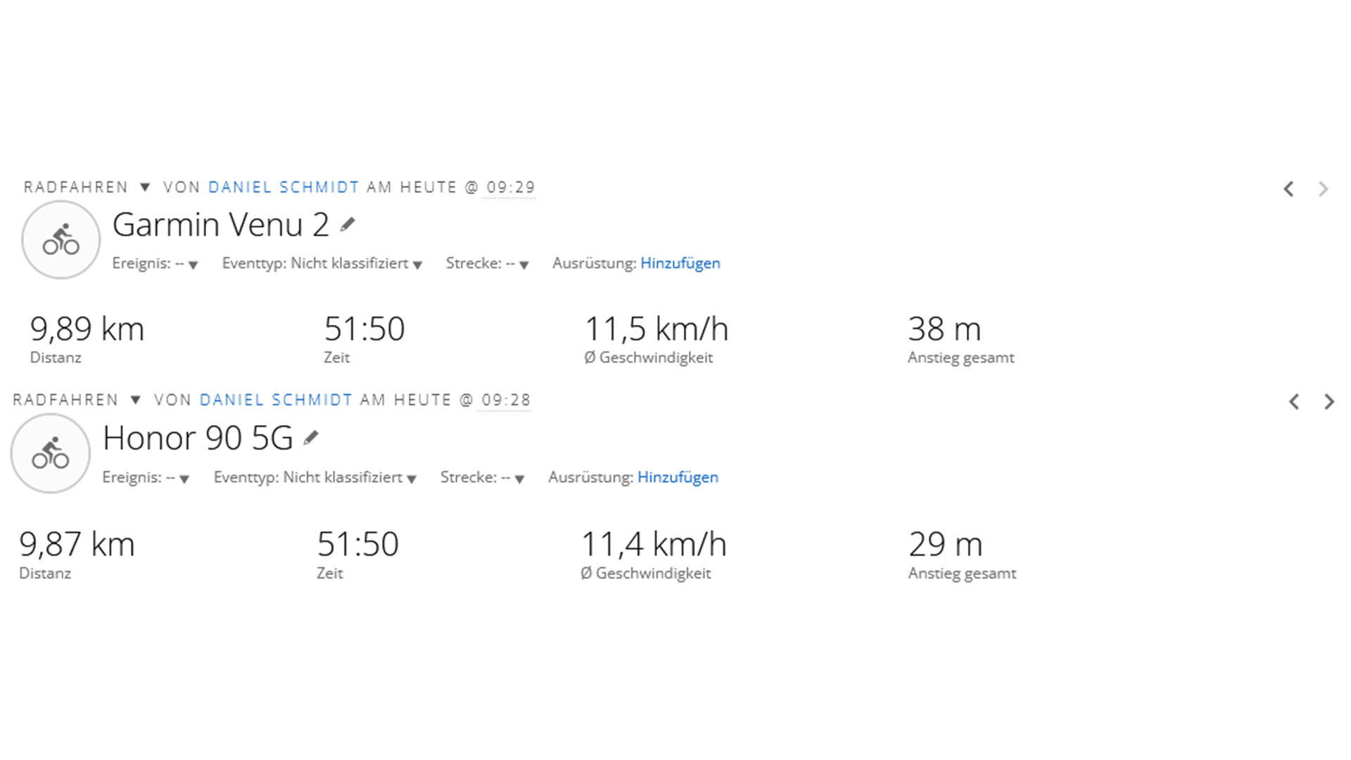 Llevamos el Honor 90 a un recorrido en bicicleta junto con el Garmin Venu 2. La ruta se registra con fiabilidad, y los radios también se reproducen bien.