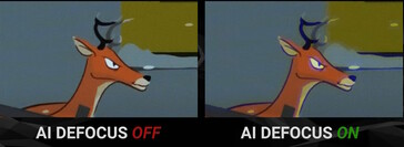 AI Defocus difumina selectivamente la imagen de la pantalla para ayudar a reducir la progresión de la miopía. La tecnología toma prestado de un diseño de lente único denominado lente DIMS (Defocus Incorporated Multiple Segments). Una lente DIMS tiene un centro correctamente enfocado, mientras que el área circundante se vuelve cada vez más desenfocada a medida que aumenta la distancia desde el centro. La imagen parcialmente desenfocada ralentiza aparentemente la progresión de la miopía a corto plazo (0-6 años), pero se desconoce el efecto a largo plazo (décadas).