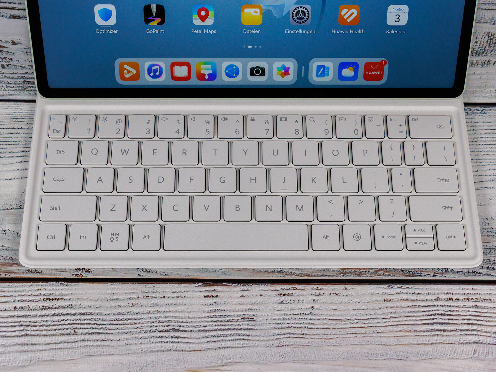 Con una altura de sólo 5,9 mm y un peso de 555 g, la tableta de Huawei es ideal para utilizarla sobre la marcha, aunque no ofrece la opción de teléfono móvil. Su rendimiento en el día a día es bueno y cuenta con interfaces modernas como Wi-Fi 7 y USB 3.2. El Bluetooth 5.2, por otra parte, parece un poco anticuado, y el Wi-Fi de 6 GHz tampoco está disponible. El teclado incluido es bueno, pero no deja una impresión de tan alta calidad como los de los modelos Pro, y la pantalla no está calibrada de forma óptima para un uso profesional.