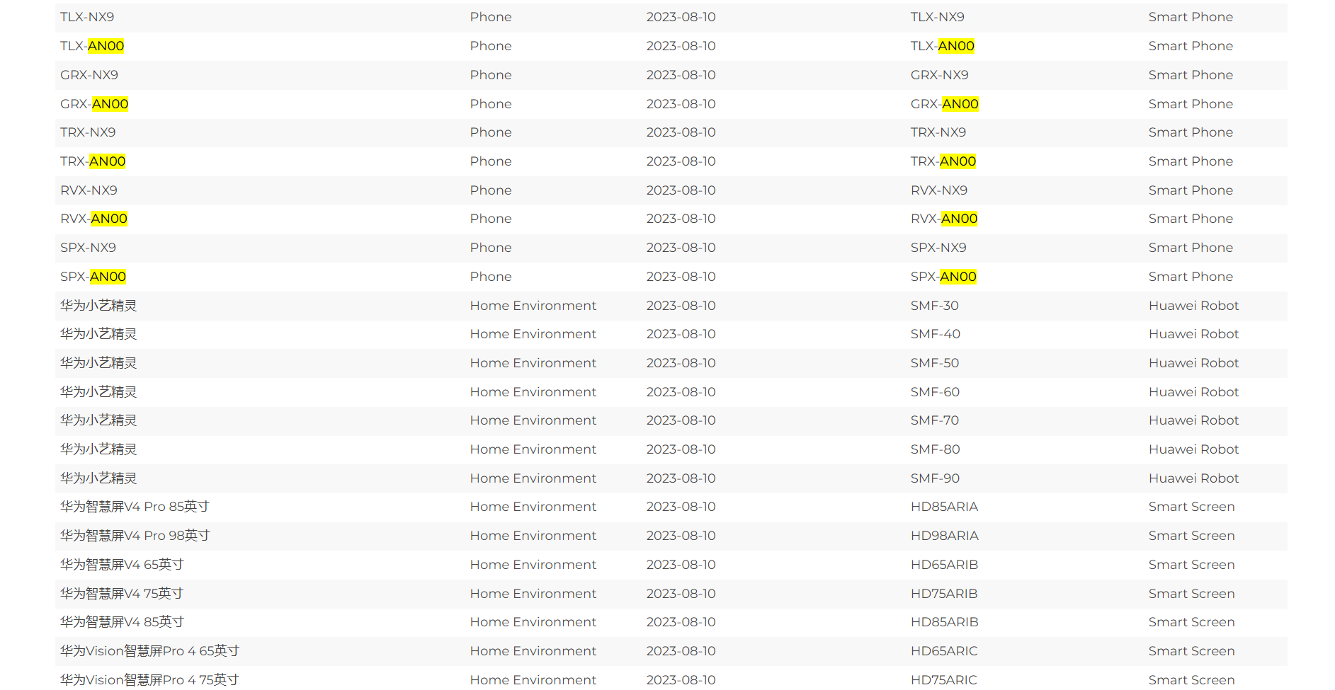 La filtración del parachoques se refiere a lo que podría ser el nuevo MatePad-y las tabletas Vision-así como una serie de dispositivos denominados de forma más simple y críptica "teléfonos". Muchos de estos productos tienen variantes con números de modelo terminados en AN00 o TN00que se han identificado como dispositivos Huawei compatibles con 5G.