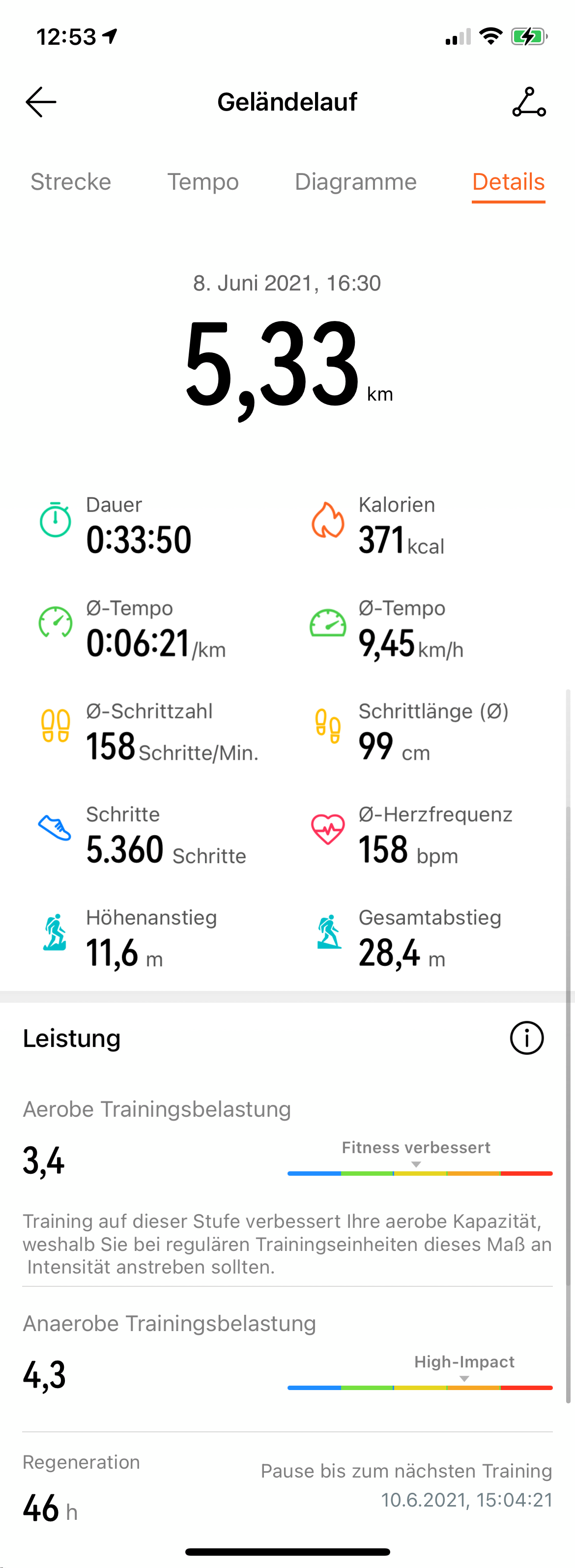 El sensor PPG TruSeen 4.5+ de Huawei funciona bien en el uso diario y durante los entrenamientos con bajas fluctuaciones. También pusimos a prueba los sensores PPG durante un entrenamiento a intervalos con cambios a corto plazo. El pulsómetro óptico de Huaweino sigue el rápido aumento de la frecuencia cardíaca con la misma rapidez que una banda pectoral con pulsómetro eléctrico. Esto no es inusual y tiene más éxito con los relojes deportivos como el Garmin Venu 2s. El hecho de que el sensor de Huawei tampoco llegue a las alturas aquí se debe a los rápidos cambios. Durante un entrenamiento de carrera, el registro de altas frecuencias cardíacas no fue un problema para el sensor de Huawei.