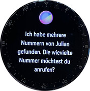 El reloj recibe los mensajes a través del smartphone conectado y, a diferencia de sus predecesores, también muestra los emojis en el nuevo sistema operativo. No muestra el icono de la aplicación correspondiente para todas las notificaciones, como se puede ver en un mensaje de WhatsApp a continuación. También se muestran las llamadas entrantes de WhatsApp.