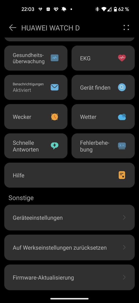 Probablemente no había sitio para un altavoz en la carcasa - una pena. Comparado con el modelo superior, el Watch GT 3 Pro las demás funciones son un poco limitadas, por ejemplo, no hay navegación de retorno. Huawei también omite por completo su propia tienda de aplicaciones en el Watch D.