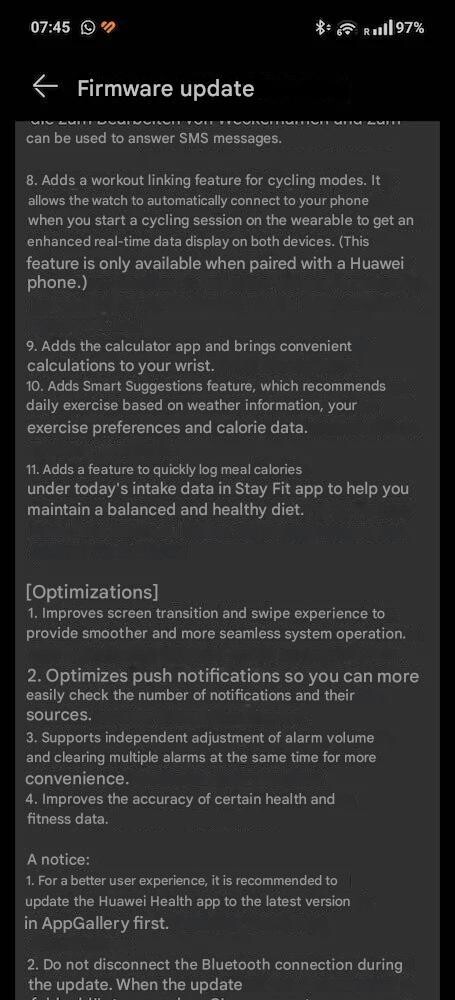 Según las notas de la versión de https://www.huaweiblog.de/news/big-update-fuer-die-watch-gt4-endlich-hos-5/la versión 5.0.0.36 trae una interfaz de usuario renovada, que la empresa sugiere que es más intuitiva. Hay dos nuevas esferas de reloj, Route Beam y Eternal Moment, y se han mejorado los anillos de actividad con más opciones de personalización. Los usuarios pueden ahora descargar mapas sin conexión para sus entrenamientos al aire libre, y hay métricas de carrera basadas en la muñeca, como el tiempo de contacto con el suelo y la oscilación vertical. Además, hay una nueva función de captura de pantalla del reloj, una aplicación de calculadora y Sugerencias inteligentes, que recomiendan entrenamientos en función de sus tipos de ejercicio favoritos, el consumo de calorías y las condiciones meteorológicas del momento.