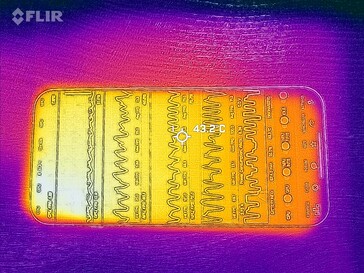 (-) La temperatura máxima en la parte superior es de 47.3 °C / 117 F, frente a la media de 35.2 °C / 95 F, que oscila entre 21.9 y 247 °C para la clase Smartphone.