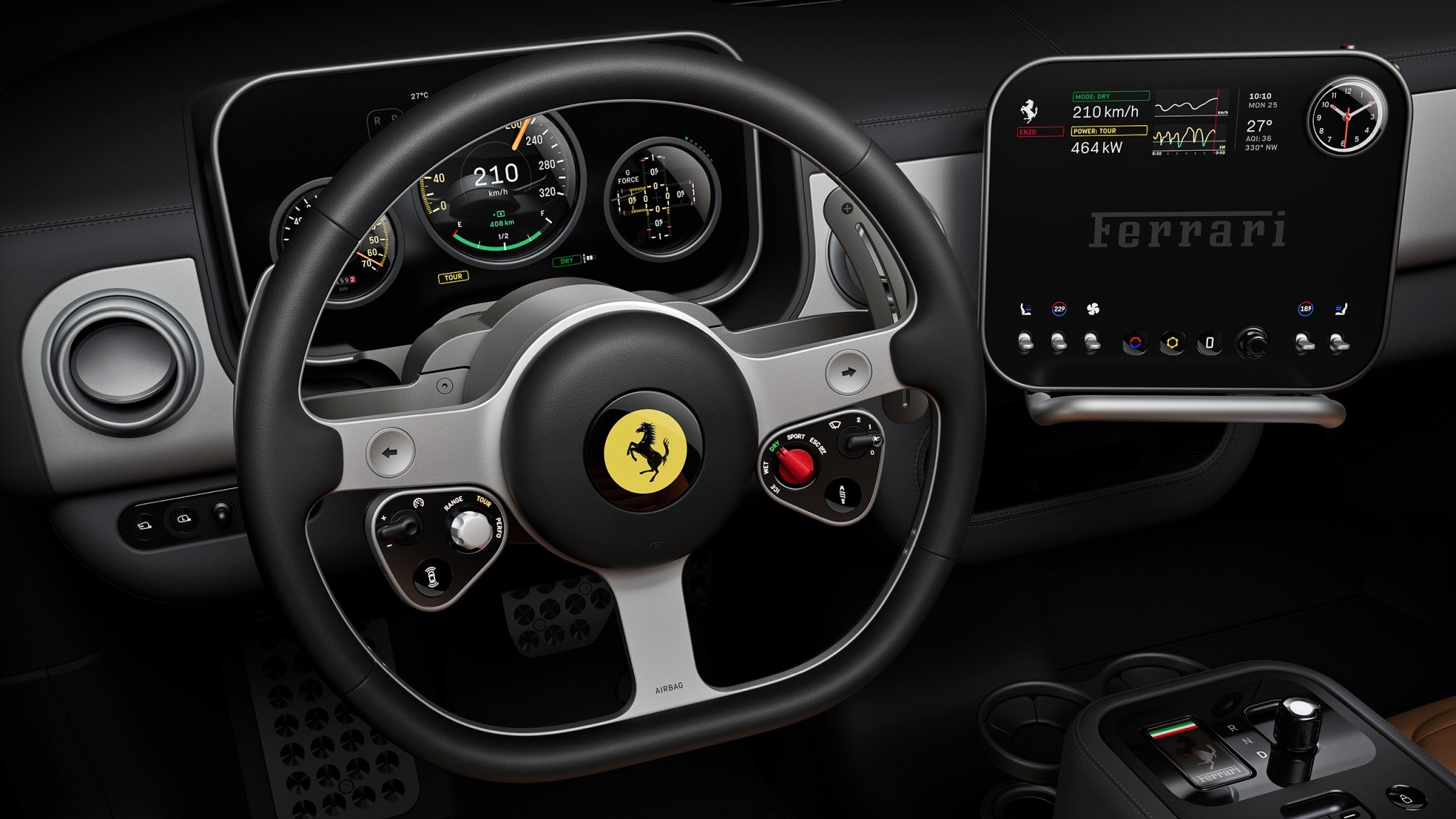 Como contrapunto a esa tendencia, Ferrari eligió el credo del diseño humano de Jony Ive para trasladar su herencia como marca clásica de coches deportivos italianos a la nueva era de los vehículos eléctricos sin perder su carácter. Los principales puntos de interacción entre el vehículo y el ser humano se han formado equipando el Ferrari Luce con"botones mecánicos de ingeniería de precisión, diales, toggles e interruptores" como entradas pero con"pantallas digitales multifuncionales" como salida, aunque con un aspecto decididamente retro.