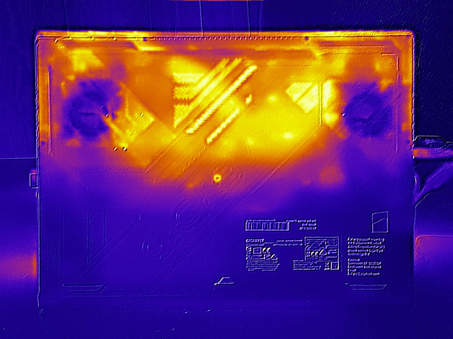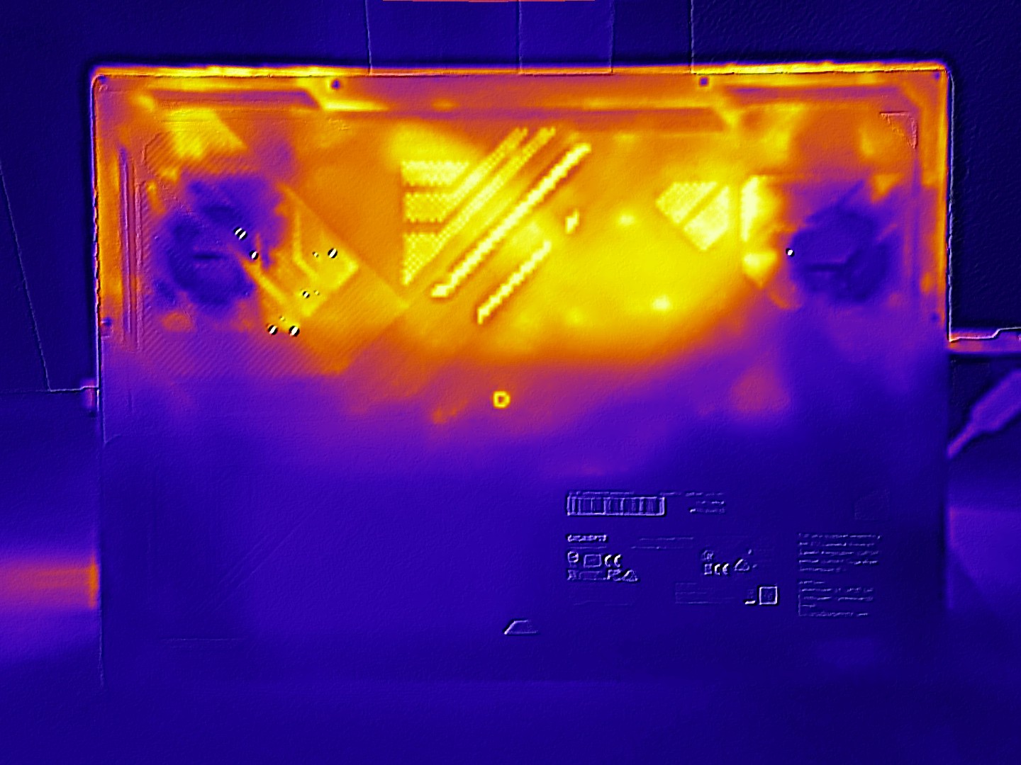 Las térmicas están dentro del rango esperado. Un máximo de unos 118°F en la parte superior y ~120°F en la parte inferior del chasis son típicos para un dispositivo de esta clase de rendimiento. En ralentí, la mayor parte del chasis se mantiene por debajo de unos 86 °F, por lo que todavía se siente muy cómodo.