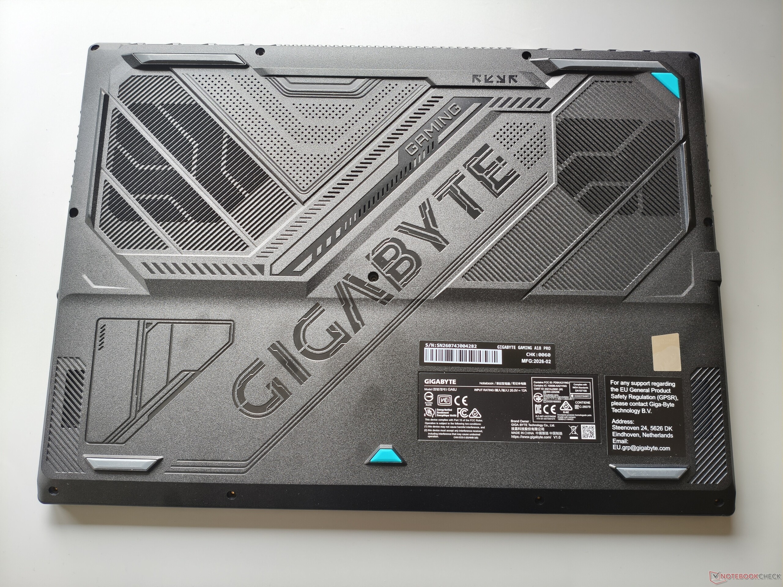 Mientras que los portátiles de 18 pulgadas eran bastante raros hace sólo unos años, cada vez son más los modelos de pantalla grande que entran en el mercado. Tras probar recientemente el Gigabyte de 16 pulgadas Gaming A16 Prode 16 pulgadas, dirigimos nuestra atención a su hermano mayor, la versión de 18 pulgadas. Aunque la carcasa es totalmente de plástico, el chasis deja una sólida impresión visual. Combinado con su delgado diseño, el portátil no se siente excesivamente voluminoso a pesar de su generoso tamaño. La calidad de la pantalla es decente, aunque no especialmente sobresaliente. El panel de 165 Hz ofrece una amplia gama de colores y un amplio espacio en pantalla, pero aspectos como el brillo aún podrían mejorarse.
