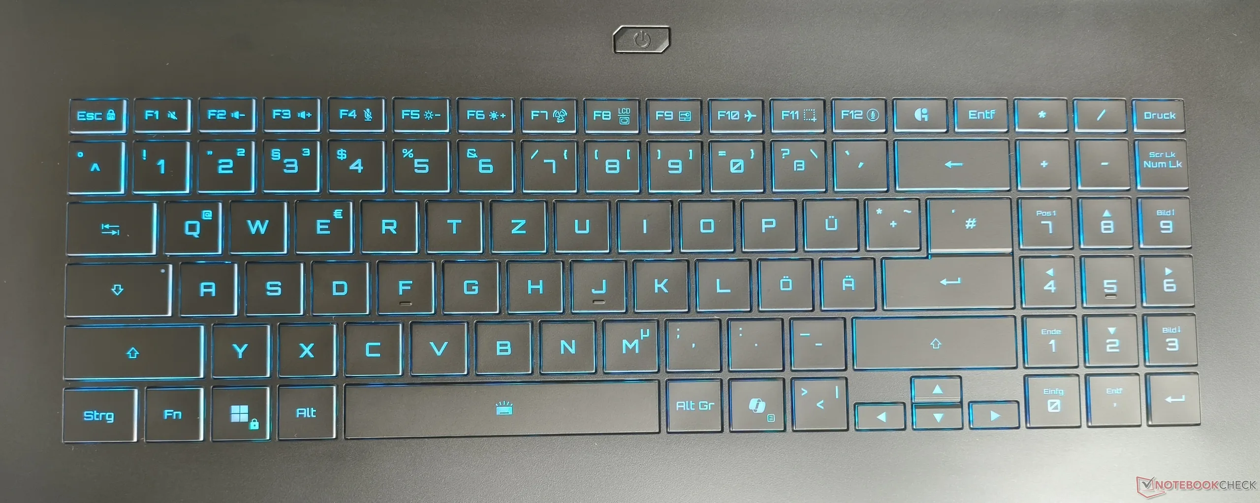 Al igual que el Gaming A16 Pro, los dispositivos de entrada nos impresionaron en nuestras pruebas. El teclado ofrece una respuesta sólida y una sensación táctil, así como iluminación RGB ajustable en varios niveles. Sin embargo, la disposición no parece del todo óptima; por ejemplo, el teclado numérico, a pesar de tener un amplio espacio, sólo tiene tres columnas en lugar de cuatro.