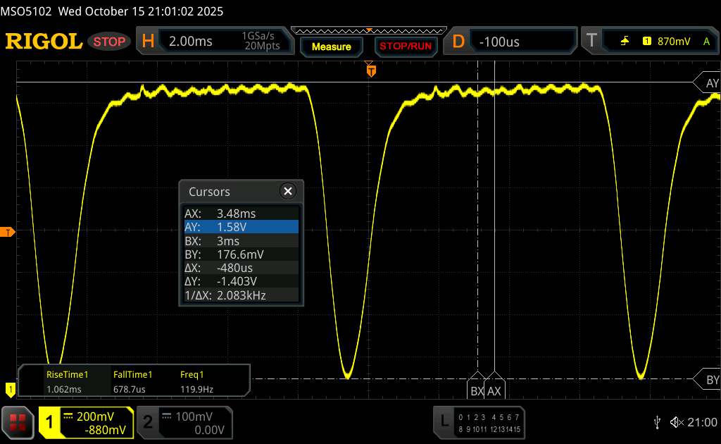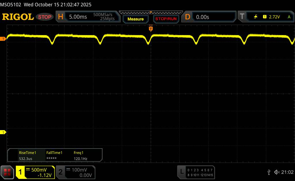 | Parpadeo de Pantalla / PWM detectado | 120 Hz Amplitude: 17 % Secondary Frequency: 2083 Hz | ||