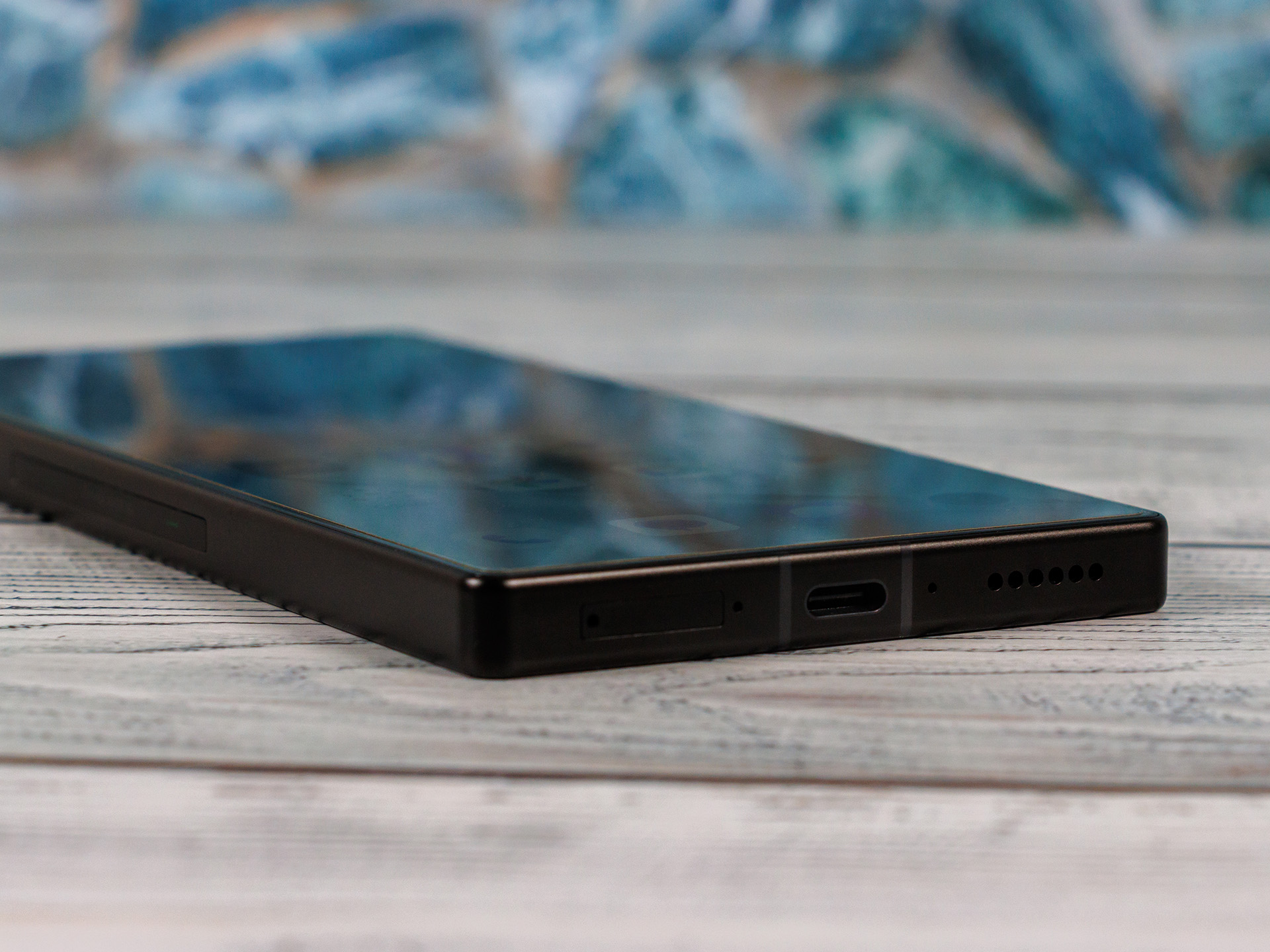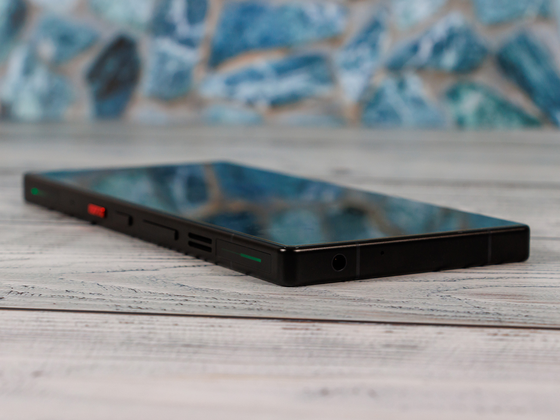 Junto al rápido puerto USB 3.2, el teléfono incluye múltiples elementos LED configurables. Para el audio por cable, dispone tanto de un conector jack de 3,5 mm de bajo ruido (SNR: 96,6 dBFS) como de un puerto USB-C.