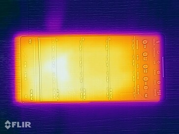 (-) La temperatura máxima en la parte superior es de 55.4 °C / 132 F, frente a la media de 35.2 °C / 95 F, que oscila entre 21.9 y 247 °C para la clase Smartphone.