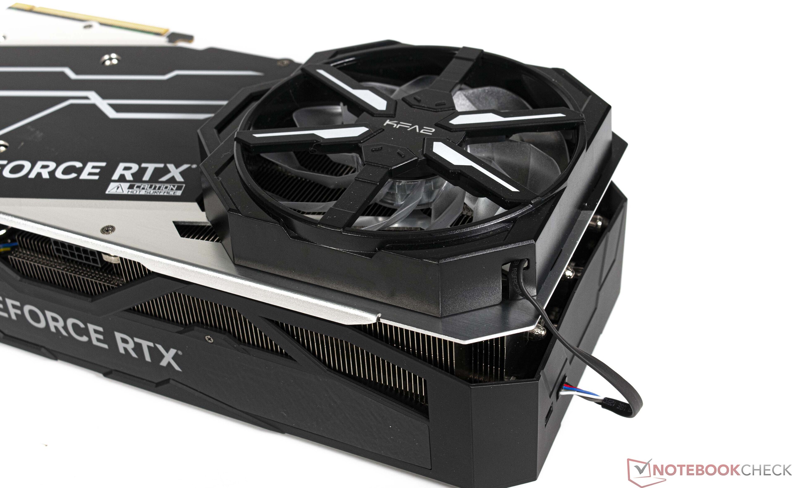 El modelo KFA2 de este análisis cuenta con un diseño especialmente desarrollado y un enorme refrigerador que funcionó estupendamente bien durante nuestro análisis. Incluso es capaz de enfriar la tarjeta silenciosamente en aplicaciones 2D gracias a su modo de parada del ventilador. La GPU requiere mucha energía y tiene una potencia nominal de 320 vatios, pero este consumo sigue estando dentro de un rango razonable. En nuestra opinión, aumentar constantemente el consumo de energía no es el camino correcto