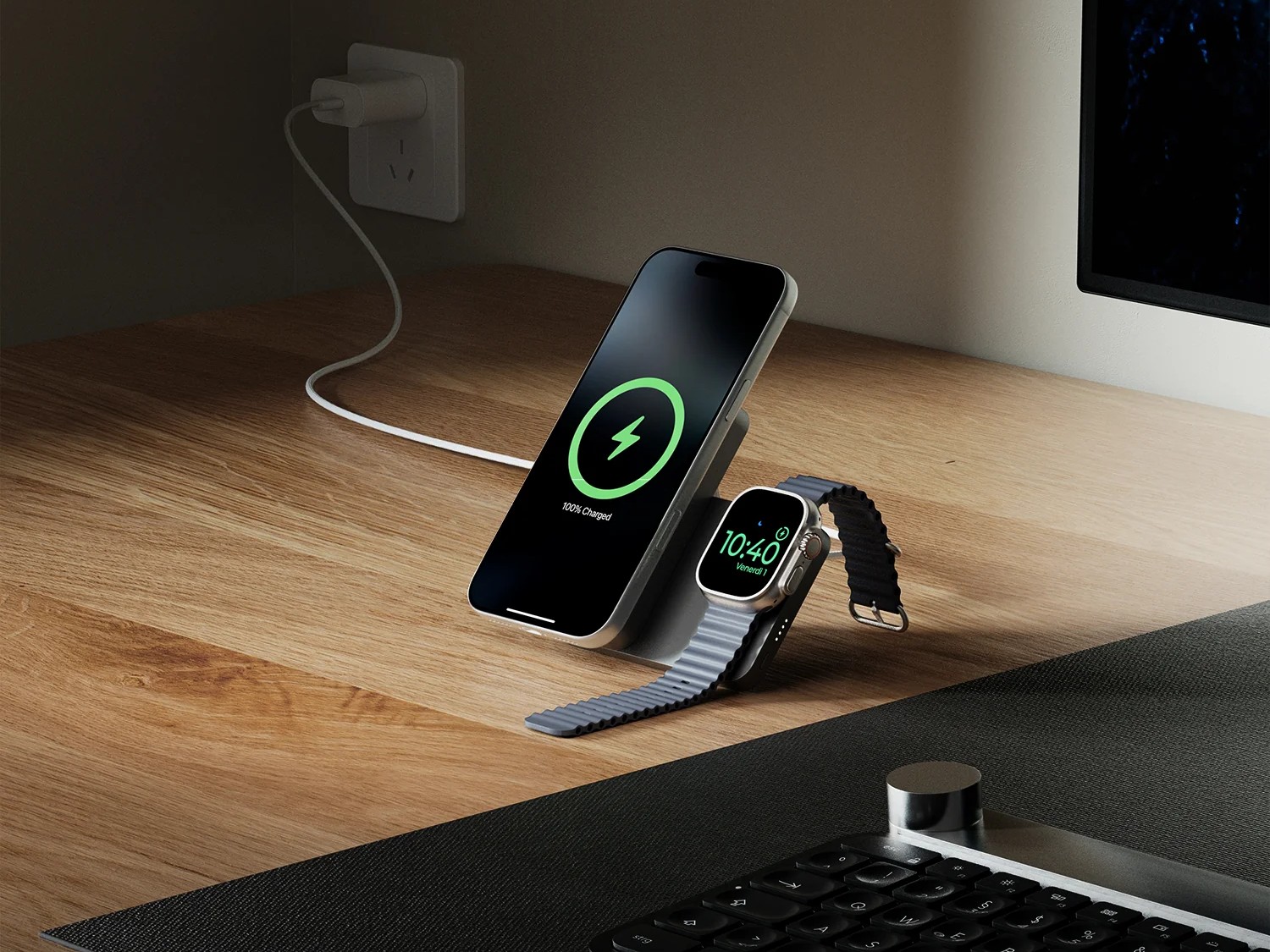Como era de esperar, el banco de energía es un poco más grueso que la mayoría de los modelos inalámbricos estándar. Mide 4,13 x 2,7 x 0,86 pulgadas y pesa 256,5 gramos. Aún así, para cualquiera que busque cargar todos sus dispositivos Apple a la vez mientras se desplaza, es un compromiso razonable. También cuenta con un soporte integrado que lo hace cómodo para utilizarlo sobre un escritorio o una mesilla de noche.