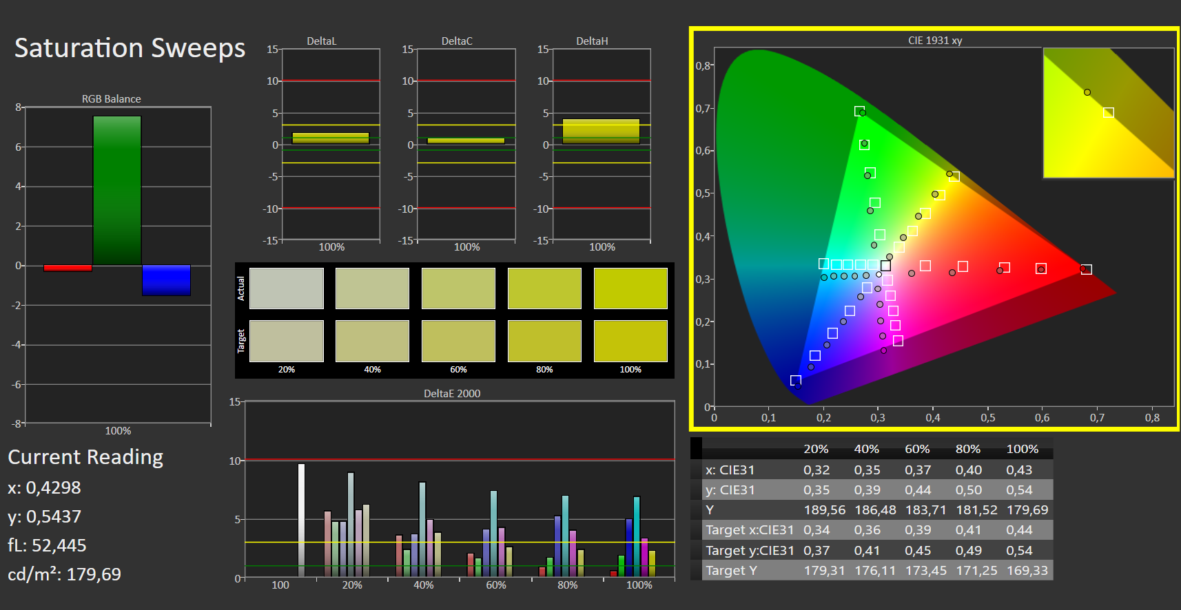 ΔE Greyscale Calman: 6.9 | ∀{0.09-98 Ø5}