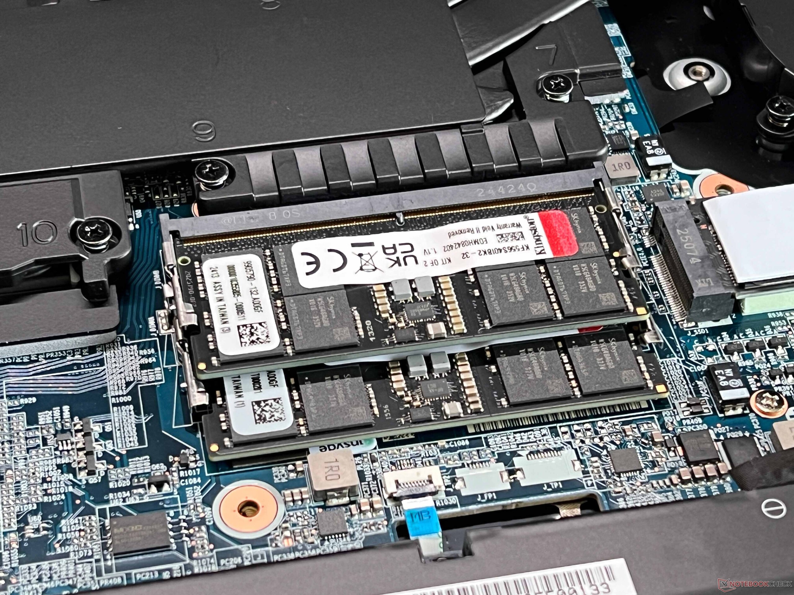 Con sus superficies negras, el diseño de la carcasa es muy sencillo, y no hay elementos de iluminación aparte del teclado. La tapa es de aluminio, pero el resto de la carcasa es de plástico, y las superficies son en general muy susceptibles a la suciedad. Ni la calidad de construcción ni la estabilidad presentan grandes problemas, aunque la unidad base hace ligeros crujidos cuando se aplica presión. El ángulo máximo de apertura de la pantalla es de 130 grados, pero las bisagras se tambalean ligeramente. Las opciones de mantenimiento son en general muy buenas, ya que hay dos ranuras cada una para RAM y SSD, el módulo Wi-Fi y la batería pueden sustituirse en caso necesario, y los ventiladores también son fáciles de limpiar.