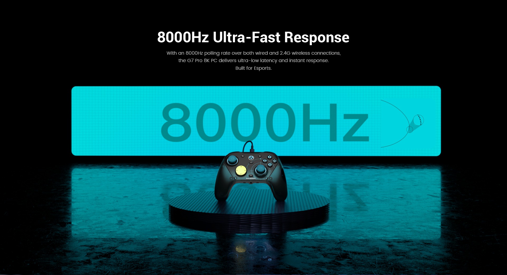 Además de lucir un diseño personalizado, el mando inalámbrico G7 Pro 8K PC Aimlabs Edition utiliza una segunda generación de sticks Mag-Res TMR que son más suaves, tienen un control más lineal y presumen de un consumo de energía ultrabajo. El nuevo mando también tiene una frecuencia de sondeo de 8.000 Hz cuando se utiliza en modo cableado e inalámbrico de 2,4 GHz, en comparación con la frecuencia de sondeo de 1.000 Hz de la versión estándar.
