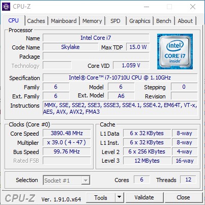 | Intel NUC10i7FNH, Intel Core i7-10710U | |