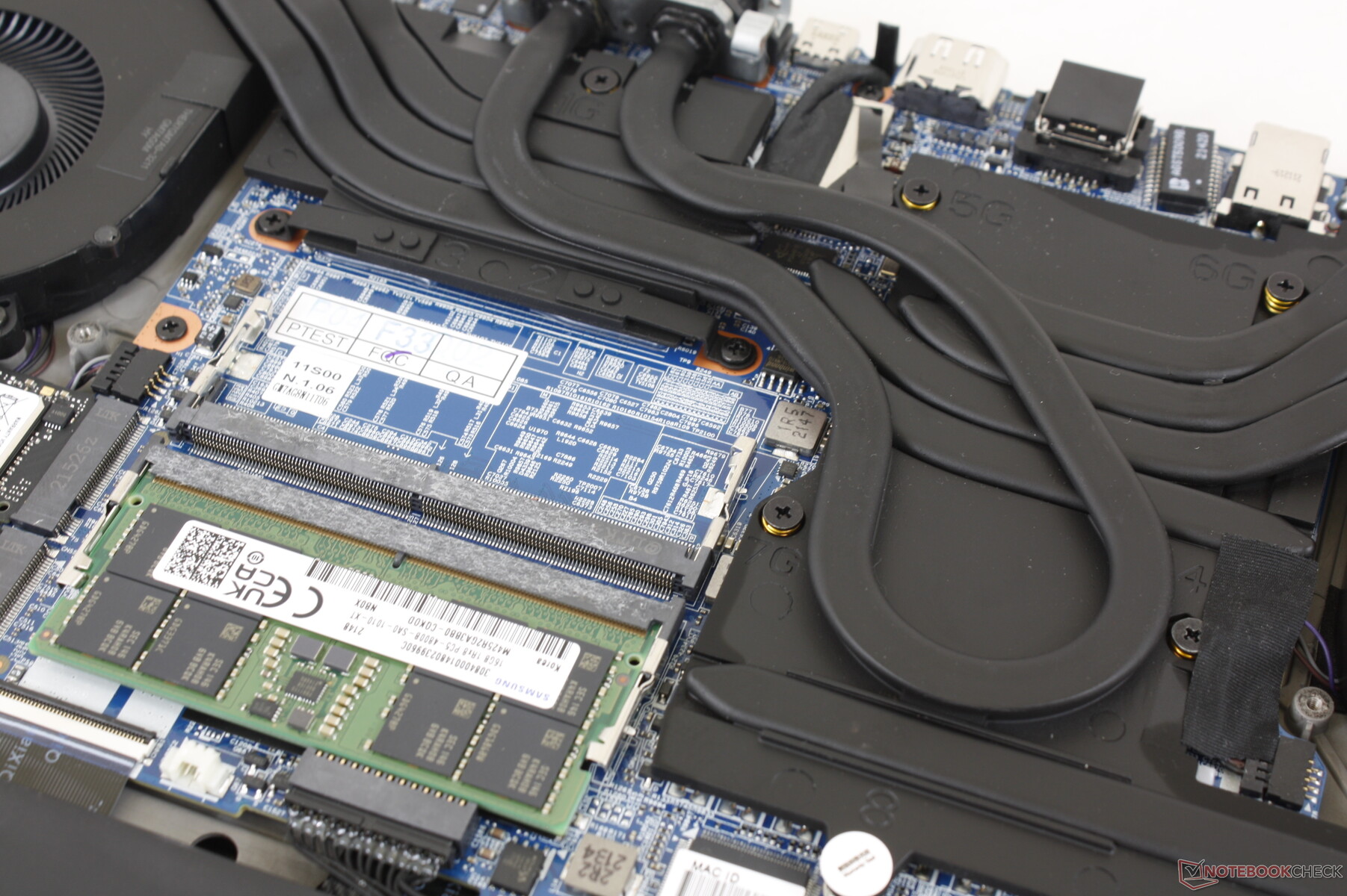 El panel inferior se quita fácilmente después de quitar varios tornillos Philips para actualizar directamente la RAM o el SSD. La placa base tiene muchas similitudes con la GM5AG8W, pero con ligeros cambios en la solución de refrigeración, como muestran las imágenes de comparación que aparecen a continuación.