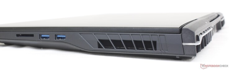 Las opciones de puerto y la posición son idénticas a las del Schenker XMG Neo 15 E22 de 15.6 pulgadas aunque nuestro Uniwell tenga un formato mayor de 17 pulgadas. Nos gustaría ver más puertos USB-C en el futuro, ya que el único puerto parece limitado.