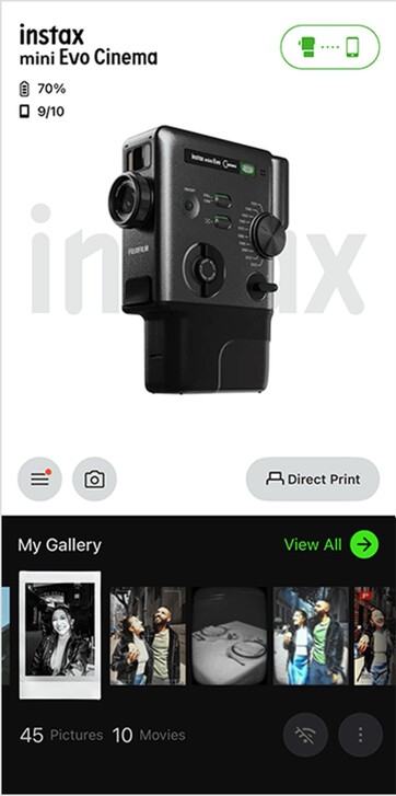 La Fujifilm Instax Mini Evo Cinema sigue claramente el modelo de una videocámara Super 8 clásica. A diferencia de la mayoría de las cámaras Instax, este artilugio no se limita a hacer fotos que se pueden imprimir en película Instax Mini, sino que también graba vídeos. Un control deslizante permite alternar en cualquier momento entre el modo foto y el modo vídeo.