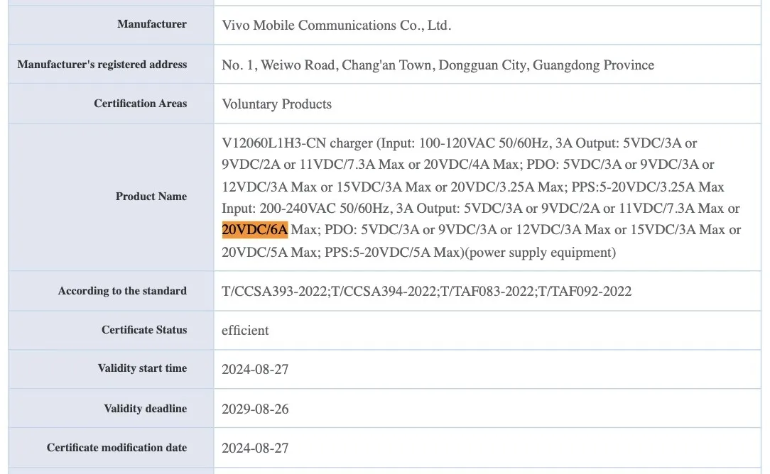 Todos ellos van por V12060Lxxxx-CN números de modelo (que son pistas potenciales a sus especificaciones en sí mismos), 1 de los cuales aparentemente se ha confirmado que soporta 120W de carga por cable por el UFCS regulador en China.