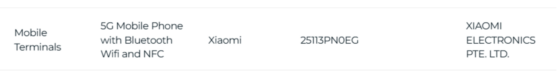 Ahora, lo que parece ser la versión global del Xiaomi 17 ha aparecido en la base de datos pública de la Infocomm Media Development Authority (IMDA) de Singapur. En concreto, el organismo regulador ha certificado el "25113PN0EG", como muestra la imagen inferior. Basándose en la nomenclatura de los números de modelo de Xiaomi, el 25113PN0EG debería ser la versión global del 25113PN0EC, un número de modelo asignado a la versión china del Xiaomi 17.