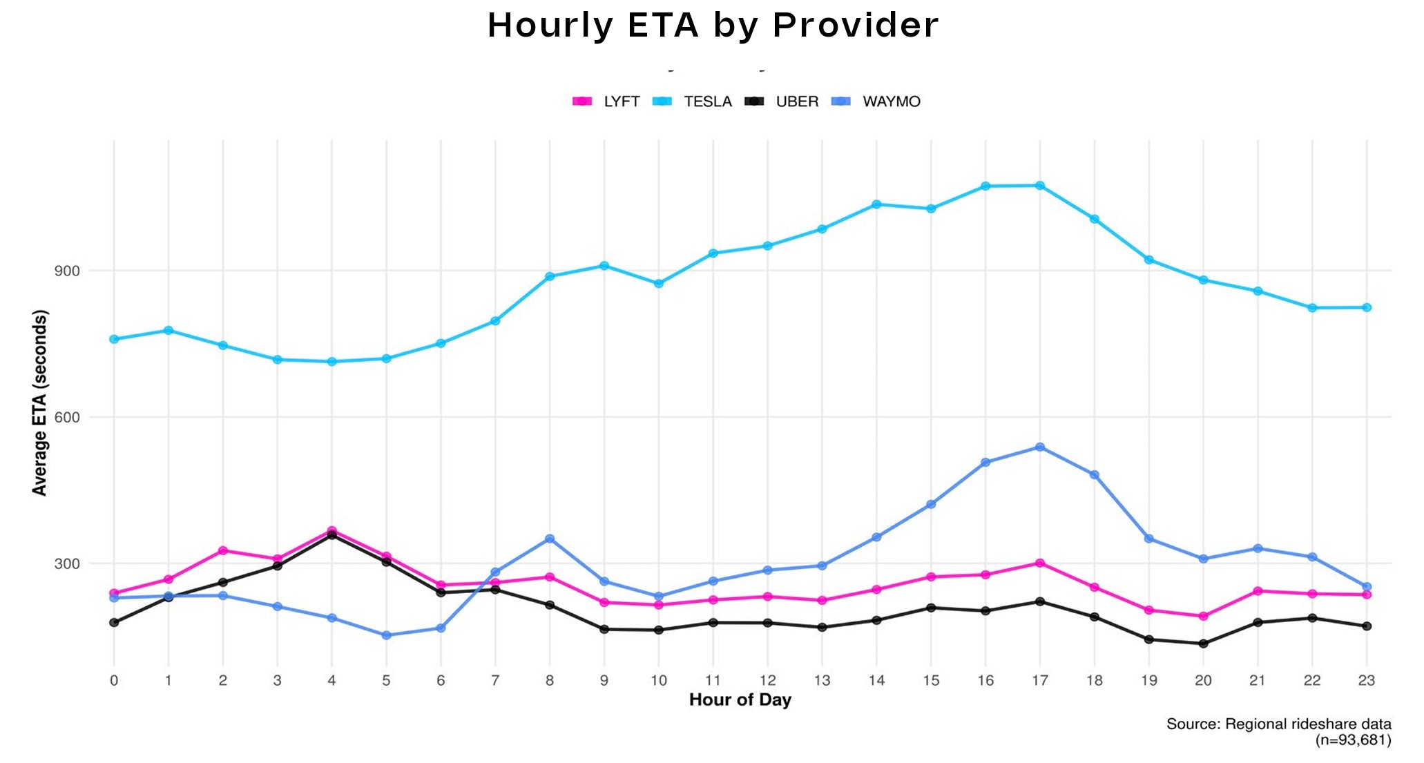 Mientras que Tesla se luce con el precio de su plataforma Robotaxi, el tiempo de espera de un Modelo Y ronda los 15 minutos si se solicita. En comparación, el otro operador de robotaxi puro, Waymo, hace esperar a los pasajeros algo más de cinco minutos de media, acercándose al tiempo estimado de llegada de Lyft.