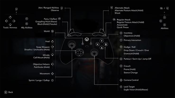 Para empezar, y probablemente el mayor cambio para los actuales jugadores de Assassin's Creed, Ubisoft ha optado por cambiar el mapa de botones, intercambiando los mapas de botones de agacharse y esquivar y fusionando esquivar con "parkour hacia abajo". Aunque parece un cambio menor, el nuevo esquema de control supuestamente permite a los jugadores pasar de esquivar directamente a hacer parkour, y ha permitido a Ubisoft implementar una nueva postura prona para el combate.