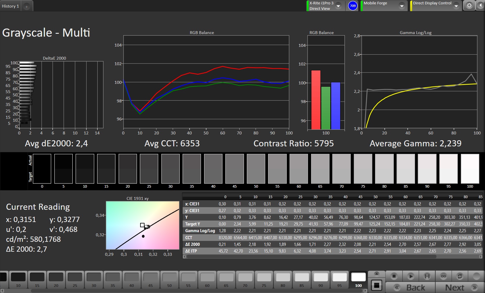 ΔE Greyscale Calman: 2.4 | ∀{0.09-98 Ø5}