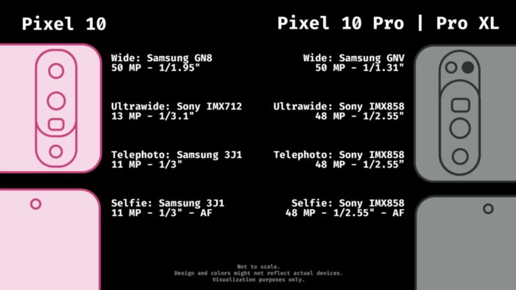 Renders del Google Pixel 10 Pro y Google Pixel 10 Pro XL no mostraron prácticamente ningún cambio de diseño con respecto a sus homólogos de última generación. Por otro lado, el Pixel 10 se mostró para empacar un tercer sensor de la cámara, ampliamente cree que es un teleobjetivo. Gracias a Android Authoritytenemos ahora un tesoro de nueva información sobre sus sensores.