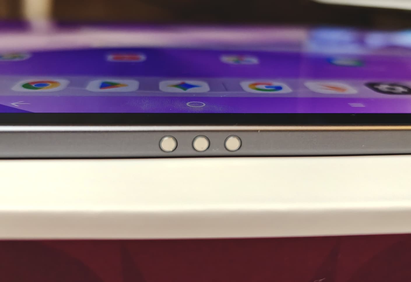 Con 7 milímetros (~0,3 pulgadas), los bordes de la pantalla son bastante delgados, pero la tableta aún se puede sujetar y manejar con fiabilidad.